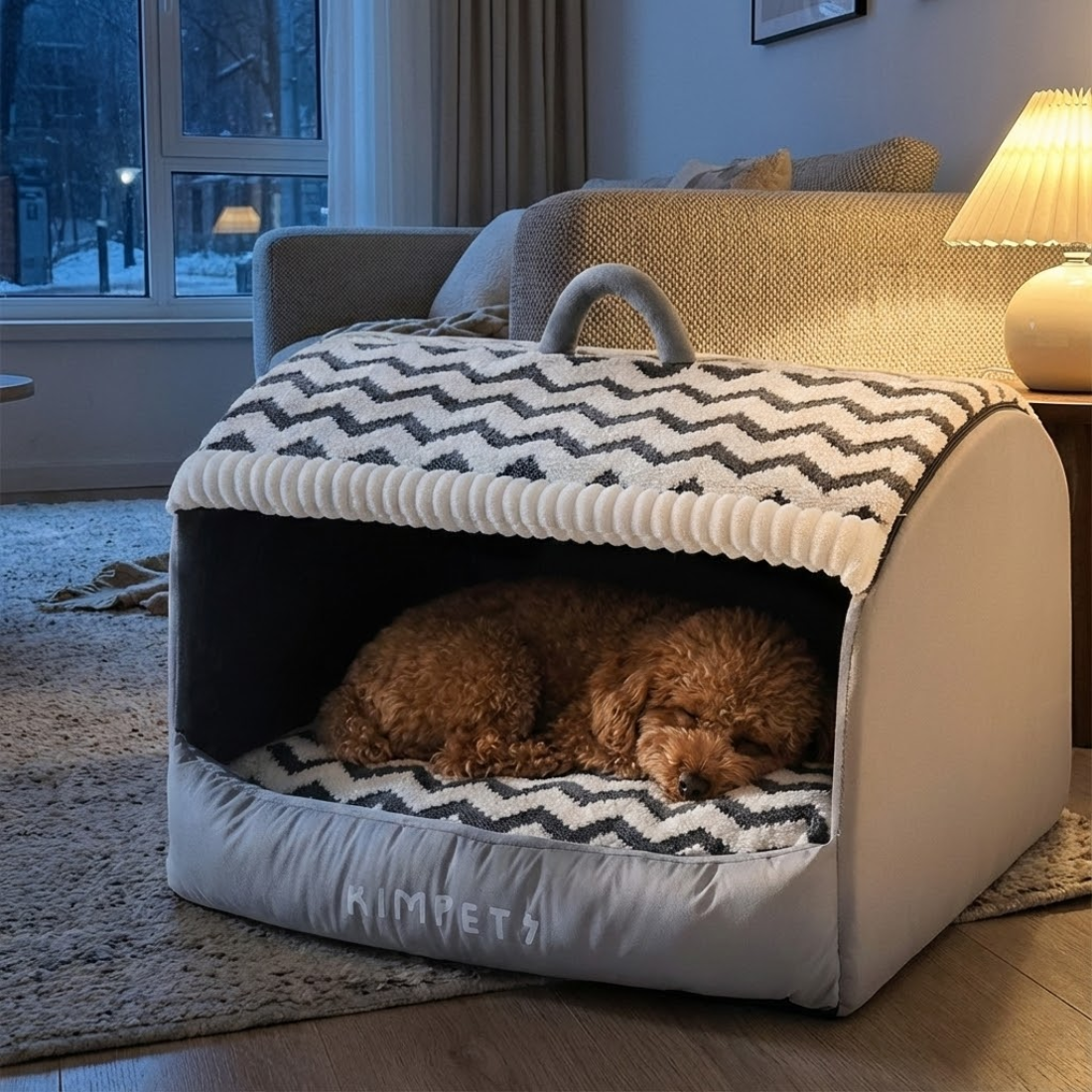 Give your pet a warm, comfy spot to rest. The semi-covered shape helps block drafts and creates a cozy, secure space—perfect for naps all day.